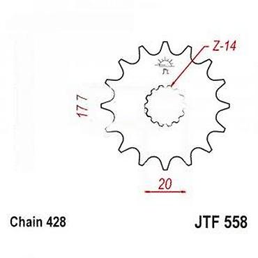 - Broj zubaca: dostupno označeno Z-14 (na crtežu); na fotografiji primer JTF558-16 (16 zubaca)