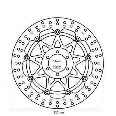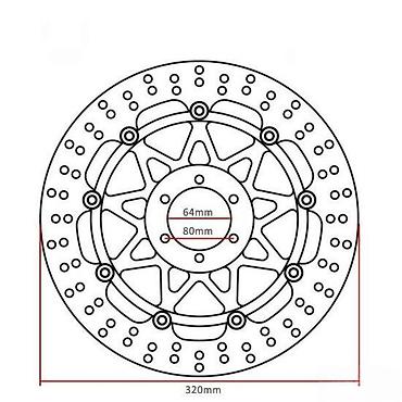 Napomena: Proveriti kompatibilnost sa glavčinom i nosačima kočnica prema navedenim merama (64 mm centar, 80 mm razmak rupa, Ø320 mm). Idealno za nadogradnju kočionog sistema i preciznije kočenje.