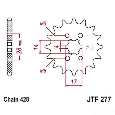 Prednji zupčanik JTF277 za lanac 428 - Tip: prednji pogonski zupčanik