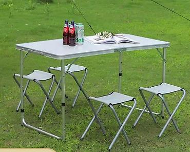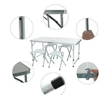Prenosivi kamp set – sklopivi sto + 4 stolice - Dimenzije stola: 120