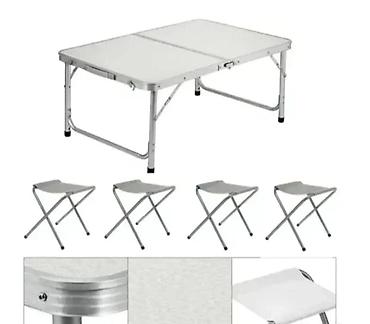 U kompletu: sklopivi sto i 4 sklopive stolice u istoj boji.