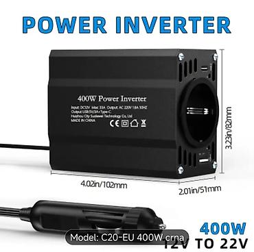Pretvarač napona 12V na 220V – 400W (Model: C20‑EU, crna)
