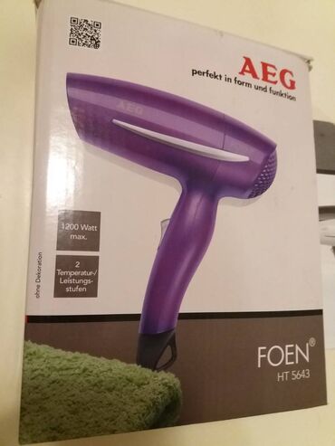 Prodajem fen za kosu AEG snage 1200W, mali, zgodan za koriscenje na putu, za susenje kose posle treninga. . .