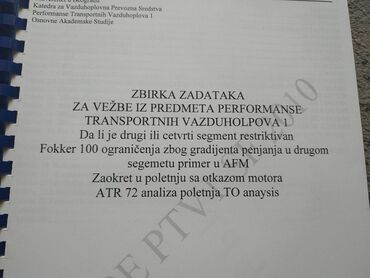 Prodajem skriptu Zbirka zadataka za vezbe iz predmeta Perfomanse transportnih vazduhoplova 1, autora Petra Mirosavljevica.