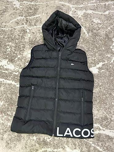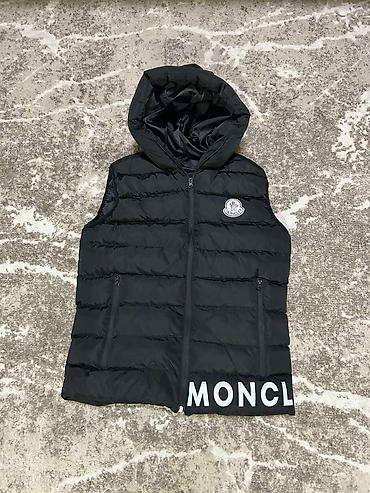 - Model 2: Crni puf prsluk sa kapuljačom, vodoravne komore za bolju termoizolaciju, dva bočna rajsferšlus džepa. Diskretan logo na grudima i veliki natpis na donjem rubu.