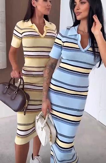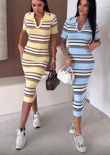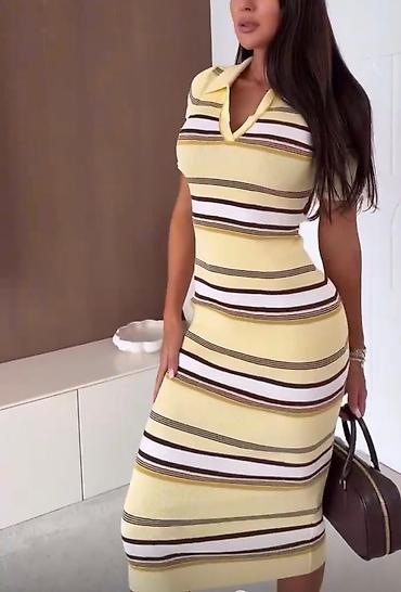 Pruge midi haljina sa kragnom - Model: pripijena midi haljina do