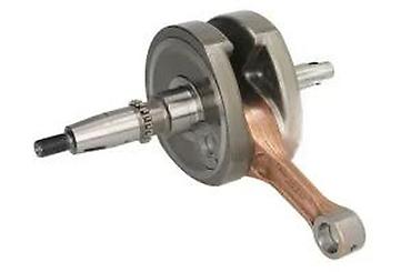 Dimenzije/kompatibilnost: vizuelno odgovara standardnoj radilici za popularne 2T skutere manjeg obima; proveriti prečnike čepova, dužinu klipnjače i profile navoja/klina prema vašem modelu motora.