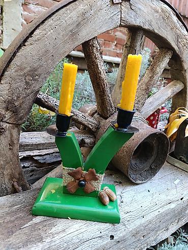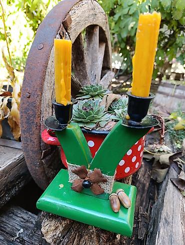 Ručni drveni svećnjak sa dve grane - Materijal: masivno drvo, ručno