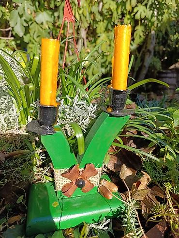 - Dizajn: dvokraki svećnjak sa metalnim držačima za sveće u crnoj boji