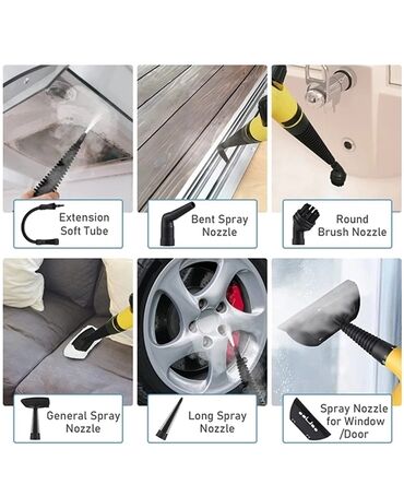 - Pogodno za klima‑uređaje (ispiranje parom), nameštaj, prozore, kuhinju (ploče, ringle), toalet, felne i delove u automobilu, kao i razne tekstile.