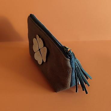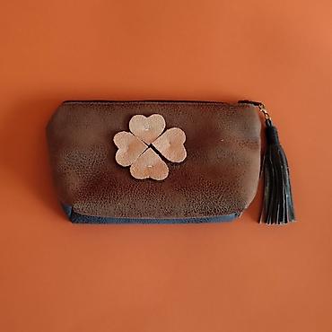 - Dizajn: dvobojna kombinacija tamno braon i tamno teget, sa aplikacijom četvorolisne deteline od bež kože na prednjoj strani.