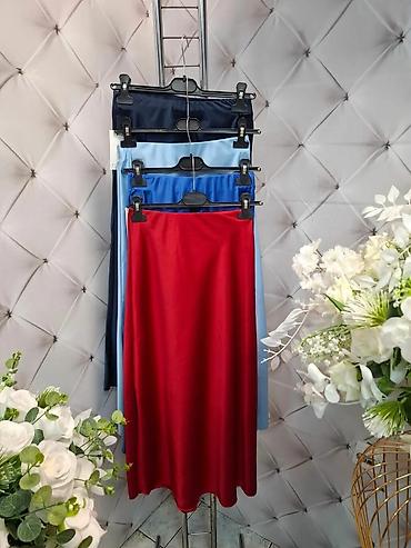 Saten midi suknja – A-kroja - Materijal: glatki, sjajni saten sa