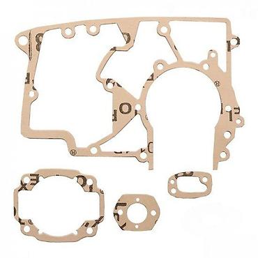 - U kompletu su više oblika: velika zaptivka kućišta sa otvorom za radilicu, zaptivka poklopca, prirubničke zaptivke za usis/izduv i karburator.