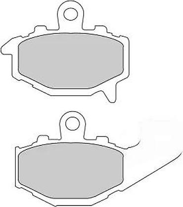Set kočionih pločica dizajniranih za motocikle. Pločice su izrađene od izdržljivog materijala koji obezbeđuje efikasno kočenje i dug vek trajanja. Gornja pločica ima karakterističan oblik sa izduženim delom i rupom za montažu, dok donja pločica ima kompaktniji dizajn sa sličnom rupom za pričvršćivanje. Ove kočione pločice su pogodne za zamenu istrošenih delova i obezbeđuju pouzdane performanse kočenja za vaš motocikl.