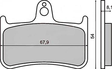 - Dimenzije pločice: širina 67,9 mm, visina 54 mm, debljina materijala 8,1 mm (vidi skicu).