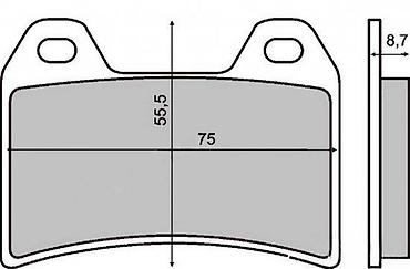 - Dimenzije jedne pločice: širina 75 mm, visina 55,5 mm, debljina ferode 8,7 mm (prema prikazanoj šemi)