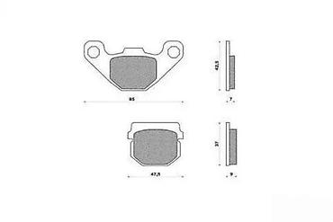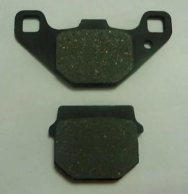 Set kočionih pločica za motocikle, dizajnirane za efikasno zaustavljanje. Pločice su izrađene od materijala koji obezbeđuje dobro trenje i izdržljivost. Komplet uključuje dve pločice različitih oblika, jedna sa karakterističnim krilima za montažu i druga pravougaonog oblika. Idealan izbor za zamenu istrošenih kočionih pločica i održavanje sigurnosti vožnje.