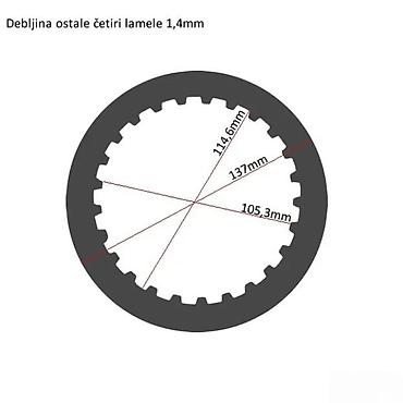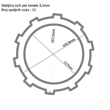 - Komplet sadrži 9 lamela: 5 spoljašnjih (frikcionih) i 4 unutrašnje (čelične).
