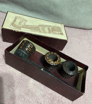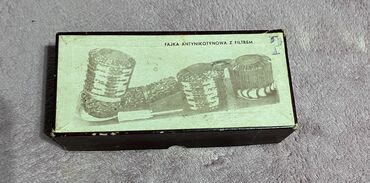 Prodaje se autentična antikvarna lula poljske izrade, sa originalnom kutijom i tri ručno rezbarene drvene glave. Oznaka na kutiji: Fajka antynikotynowa z filtrem. Svaka glava ima jedinstven uzorak rezbarije, a lula koristi standardne filtere.
