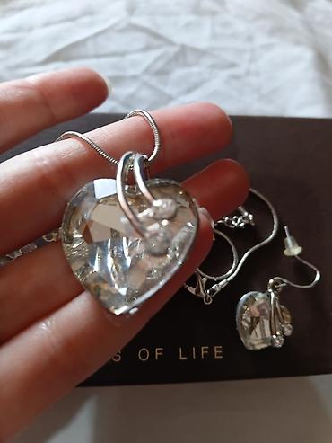- Ogrlica: zmijica lančić u srebrnoj boji sa privjeskom srce, višestruko fasetirano, ukrasno postolje sa sitnim bezbojnim kamenčićima.