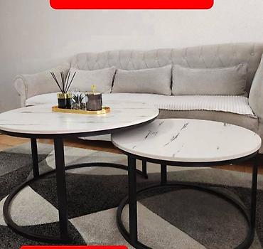 Set od 2 klub stola – okrugli, “nesting” dizajn - Gornje ploče: bela