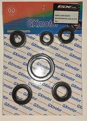 Set uljnih zaptivki dizajniran za ATV vozila od 70cc. Pakovanje sadrži više zaptivki različitih veličina, što omogućava zamenu ili održavanje ključnih delova motora ili prenosa. Proizvod je marke GXmotor, što ukazuje na specifičnu liniju delova za motorna vozila. Zaptivke su crne boje i okruglog oblika, sa metalnim prstenom unutar nekih od njih za dodatno ojačanje. Ovaj set je praktičan za servisiranje i obezbeđivanje optimalnog funkcionisanja vašeg ATV-a.