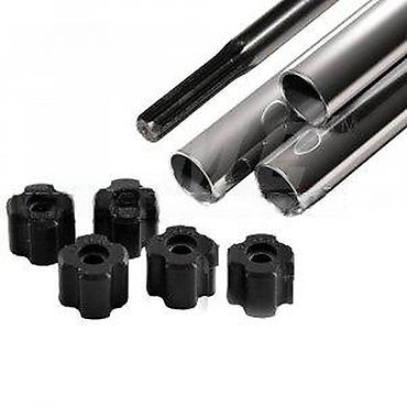 - Komplet sadrži: više metalnih cevi/čaura za krimpovanje i niz plastičnih/kompozitnih umetaka (krunica) različitih profila.