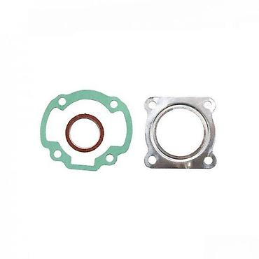 Set zaptivki za motor, dizajniran za efikasno zaptivanje komponenti. Uključuje dve različite vrste zaptivki: jednu zelenu zaptivku nepravilnog oblika sa unutrašnjim crvenim prstenom i jednu metalnu zaptivku srebrne boje kvadratnog spoljašnjeg oblika sa kružnim unutrašnjim otvorom. Obe zaptivke imaju precizno izbušene rupe za vijke, što obezbeđuje sigurno i čvrsto postavljanje. Idealno za popravke i održavanje motora, obezbeđujući pouzdano zaptivanje i sprečavanje curenja.