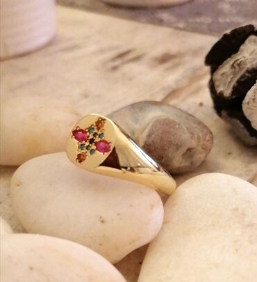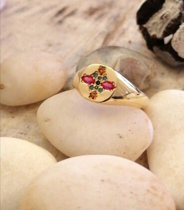 Srebro 925 sa pozlatom i prirodnim cirkonima. Veličina 9, ili 18,5-19mm.Cena 2500din.