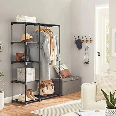 Višenamenska polica za veš sa točkićima, dizajnirana za lakšu organizaciju i sortiranje odeće u kupatilu ili Struktura: Polica se obično sastoji od tri nivoa. Gornji nivo služi kao fiksna polica ...