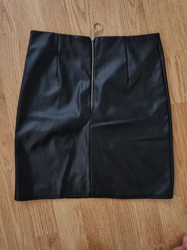 Crna mini suknja od eko kože a veličina manji m - Materijal: veštačka (eko) koža, glatka i sa blagim sjajem - Kroj: A-linija, mini dužina - Struk: elastični pojas sa širim lastišem za udobno prist...