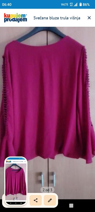 AMC ženska bluza sa dugim rukavima - Materijal: 100% viskoza (navedeno na etiketi) - Proizvedeno u Srbiji - Veličina: 40 - Dužina: 59 cm - Poluobim grudi: 49–57 cm - Cena: 1000 din (navedeno na sl...800 RSD