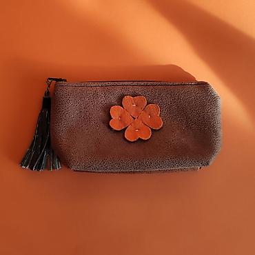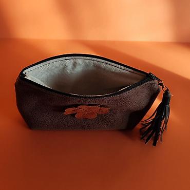 - Dekor: aplikacija cveta od narandžaste kože na prednjoj strani