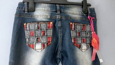 Love Moschino ženske farmerke – slim fit - Model: skinny/slim, klasičan petodžepni kroj - Brend oznake: MOSCHINO i LOVE MOSCHINO na pojasu i džepu; metalni zlatni detalji i dugme - Boja/pranje: sr...