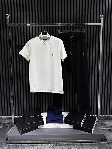 - Bela majica + crni džogeri (Polo Ralph Lauren)