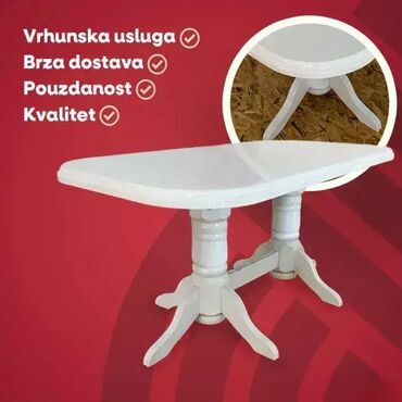 Trpezarijski sto OKIS Dimenzije stola: Ф100+30 cm Materijal: Medijapan Cena: 230€ Ostavite podatke, sliku model koji zelite da vam izradimo, dovozimo na kucnu adresu, a moze i licno preuzimanje u ...