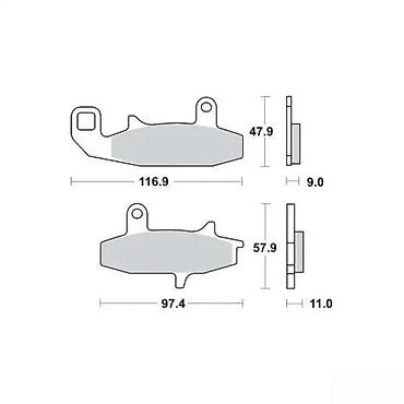 - Gornja pločica: dužina 116.9 mm, visina 47.9 mm, debljina 9.0 mm