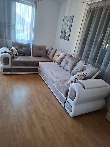 Akcija samo 220eu. Veoma povoljno nove garniture za spavanje sa najkvalitetnijim sundjerom na razvlacenje dimenzije 190*150 ima i sanduk za posteljinu ugao moze biti levi i desni jastuci su dvostr...