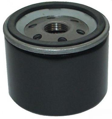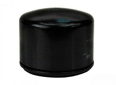- Kompaktni cilindrični uljni filter crne boje, metalno kućište sa navojnim priključkom u centru i višestrukim ulaznim otvorima.