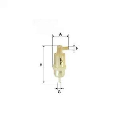 - Tip: mali plastični inline filter za gorivo, sa bočnim izlazom pod uglom i donjim pravolinijskim priključkom