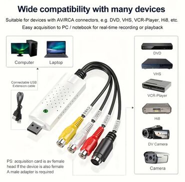 - Omogućava snimanje, arhiviranje i reprodukciju starih kaseta i kamera na računaru/notebooku.