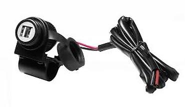 USB punjač za motocikle dizajniran za montiranje na volan. Poseduje dva USB porta za istovremeno punjenje dva uređaja. Opremljen je vodootpornim poklopcem koji štiti portove od vlage i prašine, što ga čini pogodnim za upotrebu u različitim vremenskim uslovima. Idealan je za punjenje mobilnih telefona, navigacija i drugih USB uređaja tokom vožnje, obezbeđujući napajanje na putu. Uključuje kabl za povezivanje sa električnim sistemom motocikla.