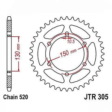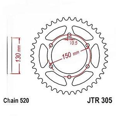 Pogodno za motocikle koji koriste standard 520 i šemu pričvršćivanja JTR 305 (proveriti PCD 150 mm i 5 rupa Ø10,5 mm). Idealno za unapređenje prenosa, brži odziv i smanjenu neogibljenju masu.