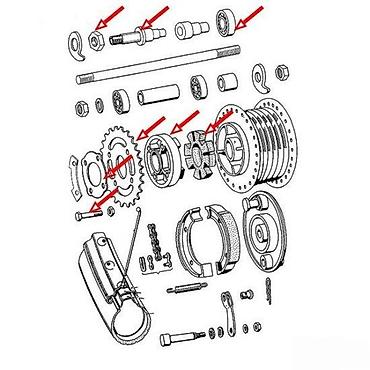 - Kompletan sklop zadnjeg lančanika sa čašom, gumama amortizera (semergume), prirubnicom i spojnim/distančnim elementima