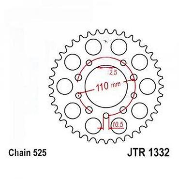 Kompatibilno sa motociklima koji koriste šemu pričvršćenja JTR 1332 i lanac 525. Odaberite broj zubaca prema željenom prenosnom odnosu i specifikaciji vašeg modela. Idealno za zamenu zadnjeg lančanika ili prilagođavanje prenosnog odnosa.