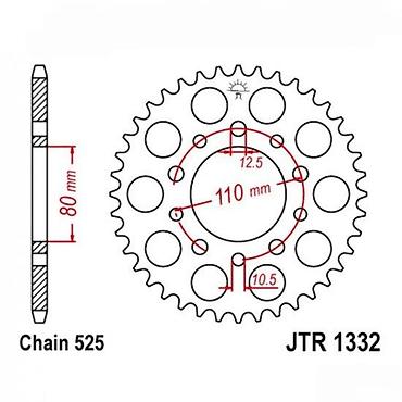 Zadnji lančanik za motocikl – JTR 1332 - Tip lanca: 525 - Prečnik