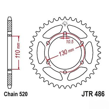 Zadnji lančanik za motocikl – JTR 486 - Model: JTR 486 - Predviđen za