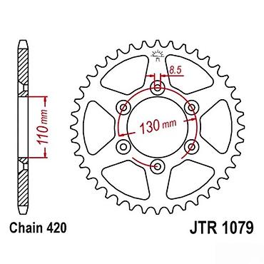 Pogodno za različite male i srednje motocikle/pit bike modele koji koriste šemu pričvršćivanja JTR 1079 i lanac 420. Pre kupovine proveriti mere: PCD 130 mm, 4 rupe Ø8,5 mm, centralni otvor 110 mm.