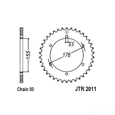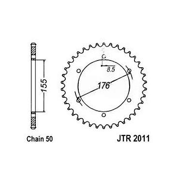 Kompatibilno sa nosačima koji koriste šemu rupa JTR 2011 (PCD 176 mm, 4 montažne rupe 8,5 mm). Idealan za precizan i pouzdan prenos snage uz lanac tipa 50.
