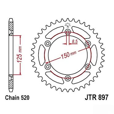 Idealno rešenje za zamenu zadnjeg lančanika na motociklima koji koriste standard 520 i šemu rupa JTR 897. Precizne dimenzije omogućavaju tačno uklapanje i pouzdan prenos snage.